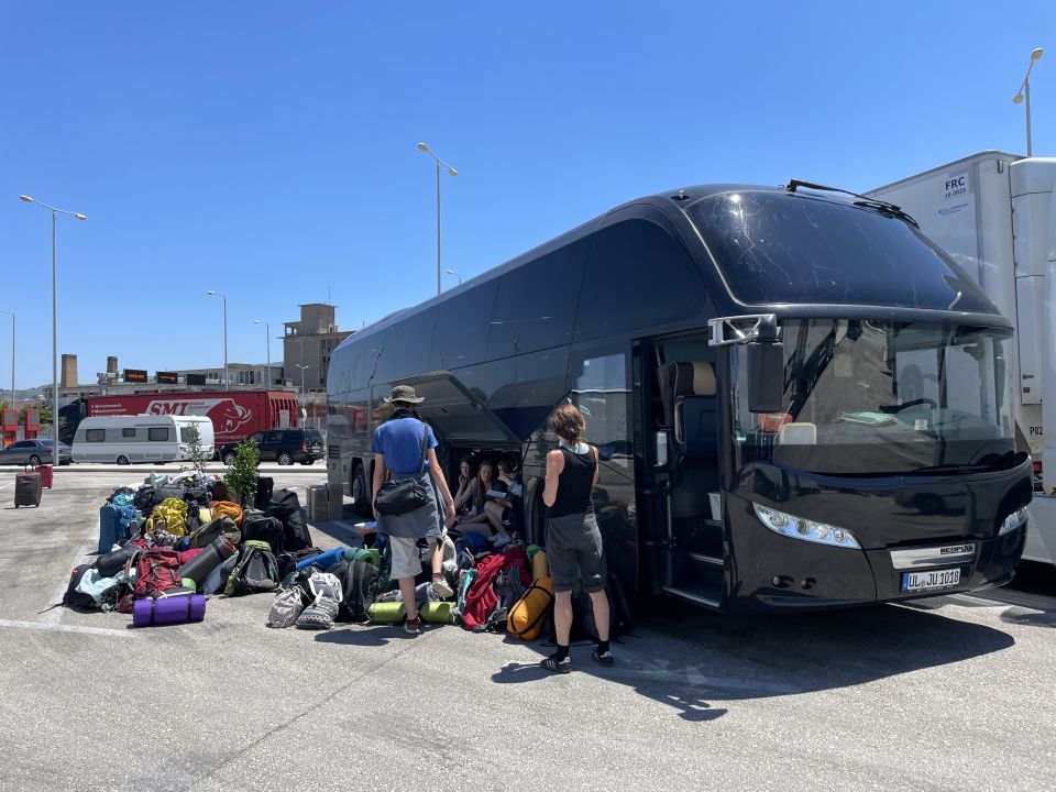 Seit Mitte 2025 gibt es auch einen stylischen Skikoffer, wenns mit dem Gepäck mal eng wird. Passt an alle unsere Busse, nehmen wir aber sehr ungern mit: da sind die Kisten dann nochmal einen Meter länger, das stellt uns dann vor allem im ländlichen Griechenland vor Probleme und manche Touren können nicht gefahren werden wie gewohnt, 15m am Stück ganz schön lang und unhandlich..
